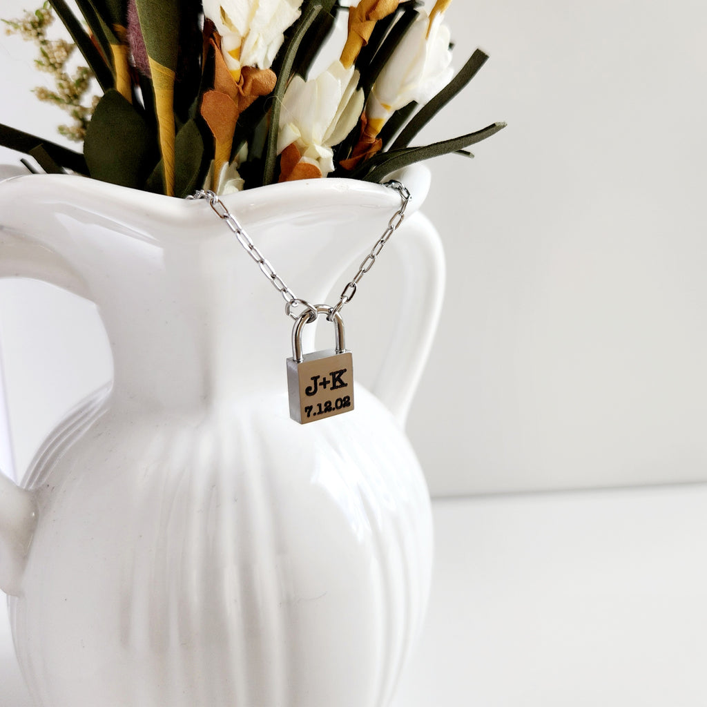 Personalized lock necklace with custom engraving