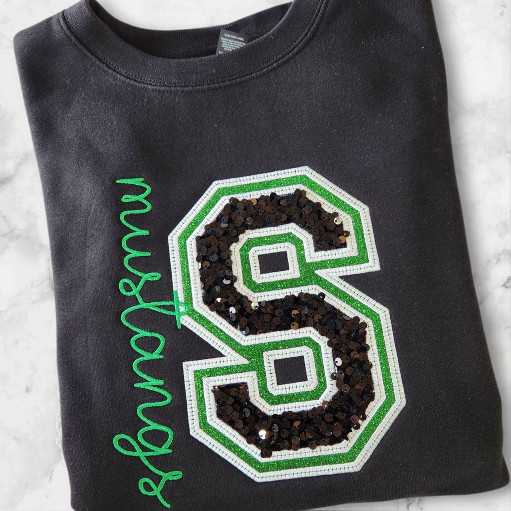 Show off your school pride in style with our Customizable School Spirit Crewnecks – the perfect mix of classic varsity vibes and eye-catching sparkle ✨